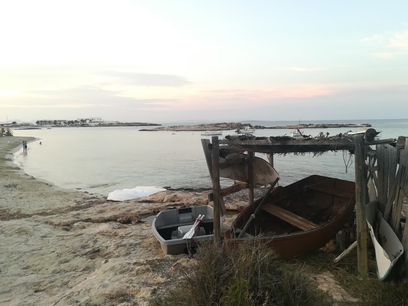 Verás que el mercado no es muy grande, y que pronto terminarás el paseo; pero este momento tiene mucho más que ofrecerte, ya que si continuas por el paseo hacia el otro lado del pueblo hasta la pasarela de madera que, dejando el mercado detrás de nosotros, sigue la hilera del mar, comprobarás la belleza de la playa de Es Pujols, repleta de los tan típicos varaderos, los lugares donde se arreglaban y limpiaban los barcos para después volver a la mar, y que forman parte del paisaje mas pintoresco de nuestra isla.