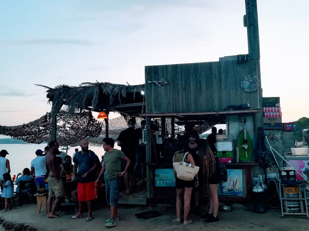El Kiosko 62 del que te quiero hablar no es uno de ellos, este kiosko sí que es para picar algo, pero lo que tiene de especial es que está situado en la arena de la playa, justo al ladito del mar. Este es el chiringuito que te imaginas cuando piensas en una película romántica en una isla perdida del caribe. Y que llegas con tu barquita después de haber navegado sobre aguas cristalinas, y desciendes a tomarte una cerveza con tus amigos isleños… unas cuantas maderas y un techo a base de redes por toral decoración; música hippie y un ambiente totalmente relajado.